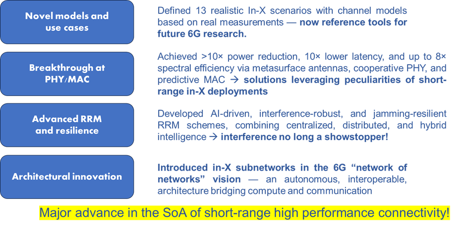 The 6G-SHINE project will pioneer the main technology components for in-X wireless subnetworks, short range, low-power radio cells to be installed in a wide set of vertical and consumer entities like robots, vehicles, production modules, and classrooms for the sake of supporting extreme communication requirements in terms of latency, reliability, or data rates. 6G-SHINE will leverage the opportunities offered by the peculiar deployment characteristics of such short-range subnetworks for a highly performant yet cost-efficient radio design that allows to bring wireless connectivity to a level of pervasiveness that which has never been experienced earlier. Read more about the project.
